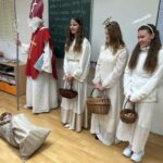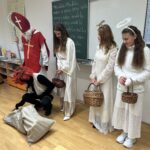V pátek 5. prosince se v chodbách naší školy rozléhalo řinčení řetězů, dupot čertích kopyt a v dálce bylo slyšet libý zpěv andělů. Přišel k nám Mikuláš se svým tradičním doprovodem. Žáci devátých tříd se pro své mladší spolužáky z prvního stupně přestrojili za Mikuláše, anděly a čerty a obcházeli třídy. Mikuláš se vždy představil, aby děti věděly, jak vlastně tato tradice vznikla. Žáci mu zas na oplátku zarecitovali básničku nebo zazpívali písničku. Za odměnu byli obdarováni andělským cukrovím a bonbóny. Nezbedníky si čerti odnesli v pytli. Všem se Mikulášská návštěva moc líbila.