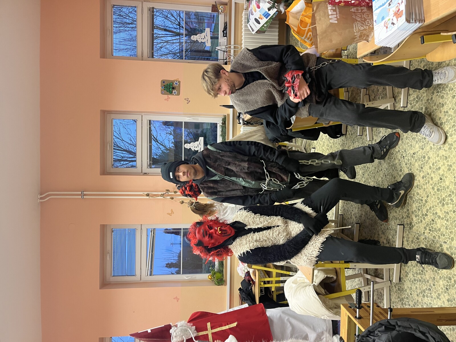 V pátek 5. prosince se v chodbách naší školy rozléhalo řinčení řetězů, dupot čertích kopyt a v dálce bylo slyšet libý zpěv andělů. Přišel k nám Mikuláš se svým tradičním doprovodem. Žáci devátých tříd se pro své mladší spolužáky z prvního stupně přestrojili za Mikuláše, anděly a čerty a obcházeli třídy. Mikuláš se vždy představil, aby děti věděly, jak vlastně tato tradice vznikla. Žáci mu zas na oplátku zarecitovali básničku nebo zazpívali písničku. Za odměnu byli obdarováni andělským cukrovím a bonbóny. Nezbedníky si čerti odnesli v pytli. Všem se Mikulášská návštěva moc líbila.