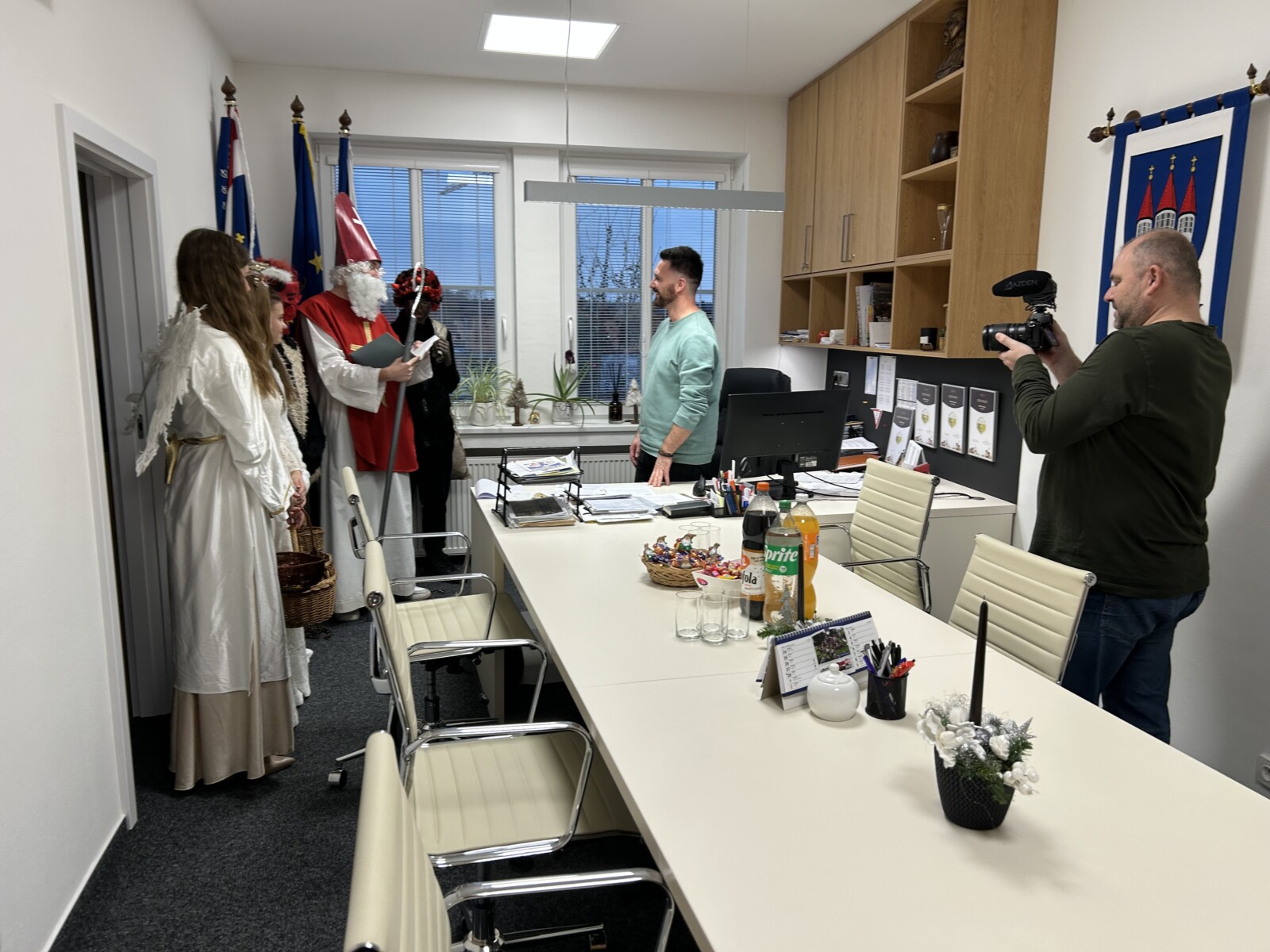 Družina zavítala také na radnici. Pan starosta řekl, že vše bude tak, jak má být a jak slíbil. I on dostal sladkou odměnu.