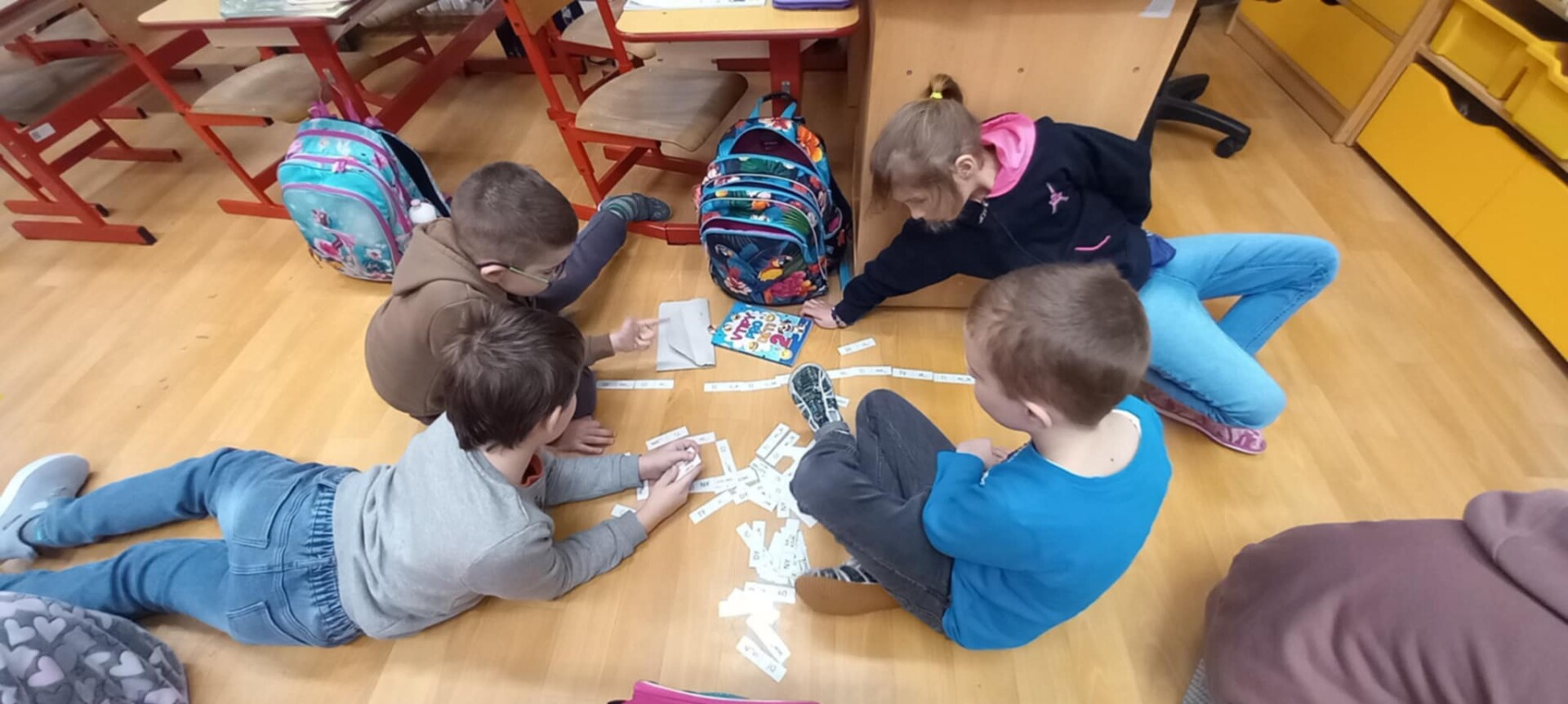 V září jsme se vzájemně poznávali, naučili se číst první písmenka a slabiky, hráli jsme si s geometrickými tvary, malovali jsme draky a tvořili s plastelínou.